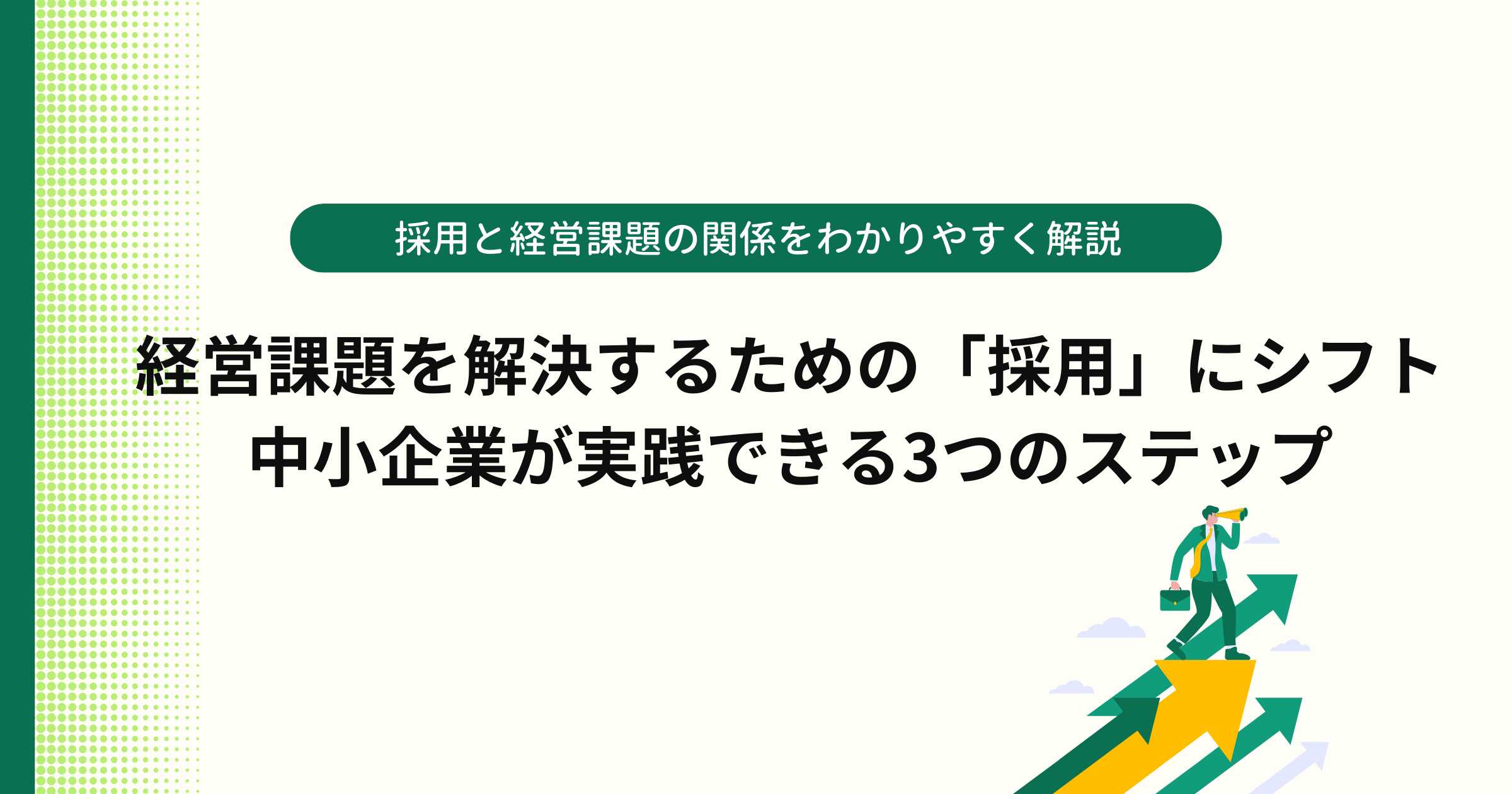 本記事では、中小企業が抱えがちな経営課題を踏まえながら、「採用を経営課題の解決手段としてどう位置づけ、どのように設計・運用していくか」を具体的な実践策とステップとともに解説します!
